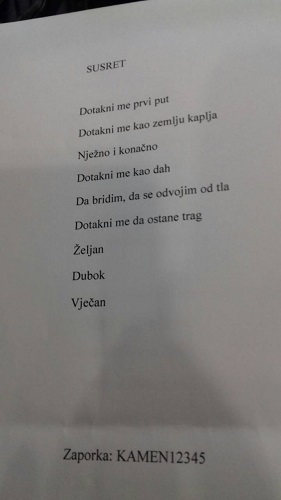 Tako se ove godine mogao čuti glas Matije Gulana koji se predstavio publici sa dva lirska rada: Susret i Zrcalo tuge. Matija je mladi lirski glas, učenik drugog razreda koji u svojim lirskim minijaturama dotiče misaone teme poigravajući se minimalističkim izrazima i kompleksnim metaforama. Pjesma Susret je posebno privukla pozornost prosudbenog povjerenstva koji ga je pohvalio i istaknuo kao jednog od originalnijih autora.